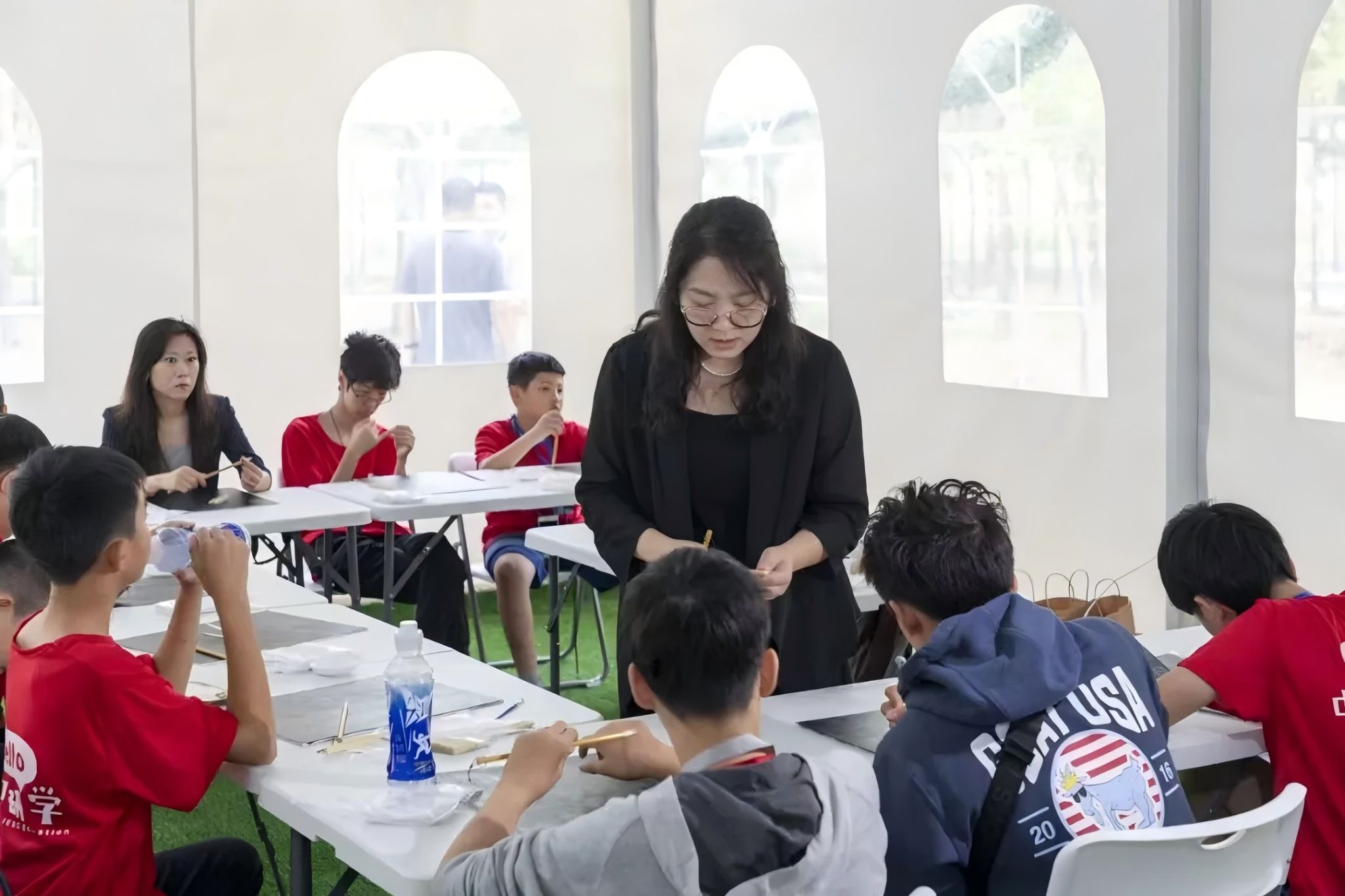为响应和落实习近平总书记在2023年访美时提出的“未来五年邀请五万美国青少年来华交流学习”的重要倡议,近日我校师生走进天津市宁河区大贾村生态农业产业园,为来津的“美国纽约青少年夏令营”一行31人开展了“天美传统艺术国际工作坊”系列体验活动。