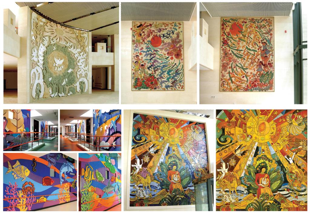北京市儿童福利院壁画群《巢》《翔》《拥抱大自然》《爱的阳光》 500m2 综合材料 2007年