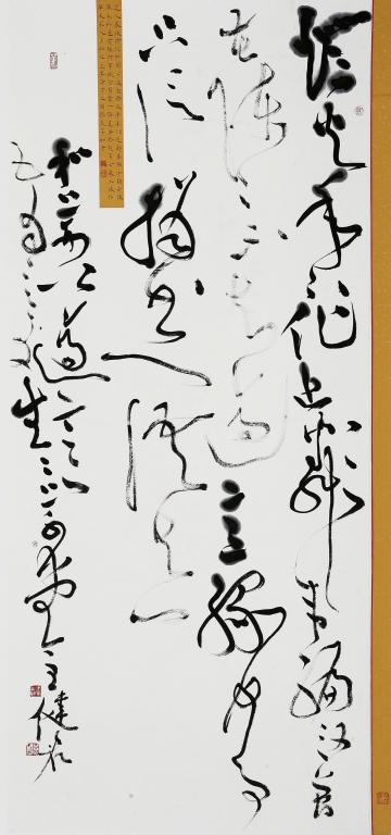 草书严复诗《和荆公适意》 95cm×180cm 释文 :灯火年年作近邻,韦编汗简苦陈陈。不知适意缘何事,只信捐书一语真。
